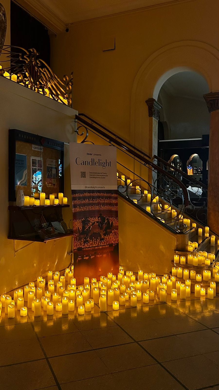 Our concert was at Teatro Margarita Xirgu (Chacabuco 875), in San Telmo. It’s part of the Casal de Catalunya cultural center, and one of those historic Buenos Aires theaters that’s eye-catching without being intimidating. Deep red velvet seats face the stage, framed by ornate balconies, while a painted ceiling and warm, golden lighting give off a quiet grandeur. The seated capacity is only 480, and sightlines seemed to be good from all areas. All in all, the setting was faultless, the acoustics outstanding, and the candles did indeed create the right amount of romance.