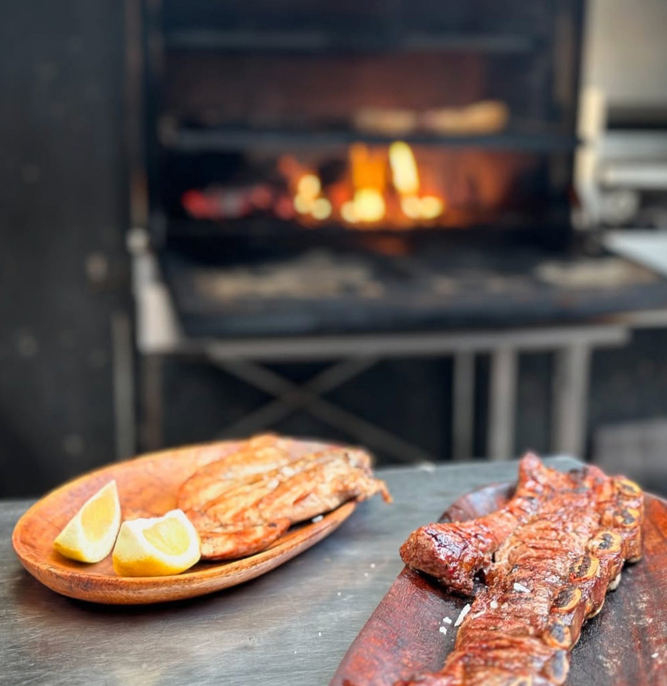 On a busy Villa Devoto avenue, Todo Brasas elevates the classic Argentine parrilla with slow-cooked cuts suspended in industrial jualas (iron cages) that roast over wood for up to 4 hours. The vibe is bold and relaxed; costillares (ribs) and vacío (flank steak) take centre stage while the energetic dining room strives to bring the campo into the city. Their menú ejecutivo here includes a main, a side drink, and a dessert. Choose from fusilli pasta with fileto sauce, bife de chorizo and grilled chicken, the latter two with mash, fries or salad sides. Water, soft drink, or lemonade, and a dulce de leche pancake complete the set.