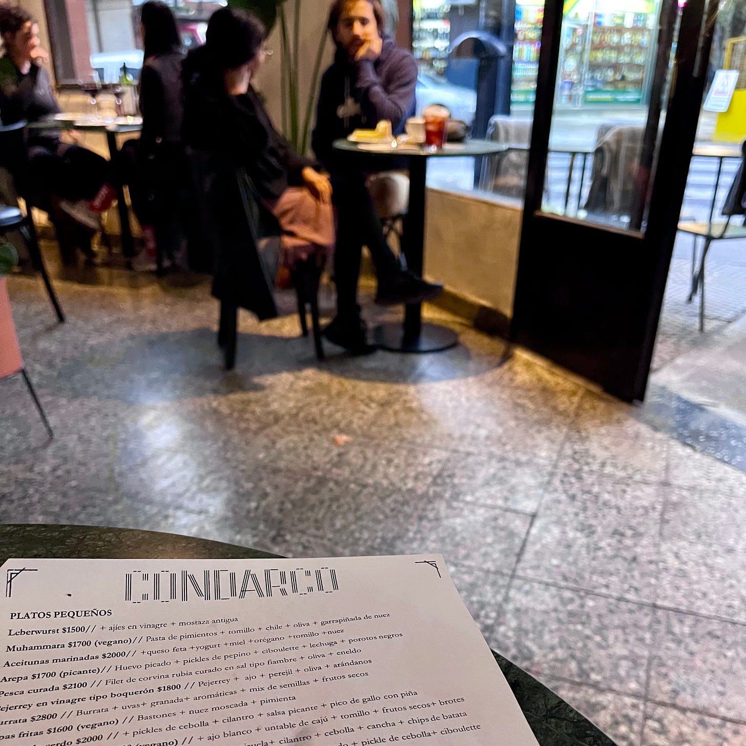 Condarco is a Chacarita favourite that balances a relaxed ambiance, style, and seriously good and value-for-money food. Known for its tortilla de papas and cured fish, the menu shifts with the seasons but never compromises on quality. At lunchtime, a tighter lineup of porteño classics comes in big portions, a contrast to the evening sharing-plate vibe. The current midday deal includes a drink (water, soda, or wine) with standout mains like agroecological chicken leg with roasted potatoes and onion, or a vegan-friendly potato gnocchi with passata and pesto.